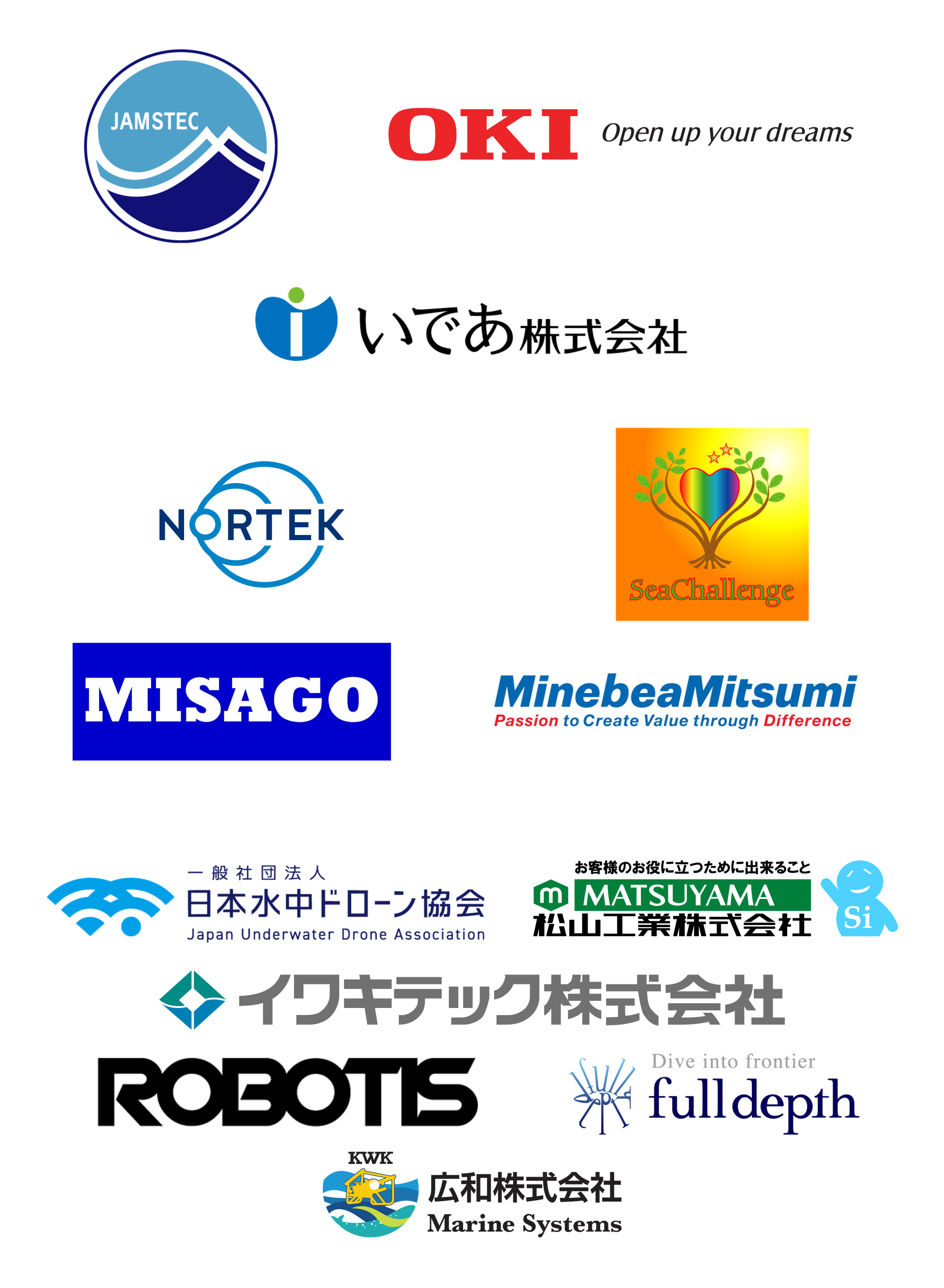 国立研究開発法人海洋研究開発機構 沖電気工業株式会社 株式会社OKIコムエコーズ いであ株式会社 Nortekジャパン合同会社 株式会社SeaChallenge ミサゴ株式会社 ミネベアミツミ株式会社 日本水中ドローン協会 松山工業株式会社 イワキテック株式会社 株式会社ロボティズ 株式会社FullDepth 広和株式会社